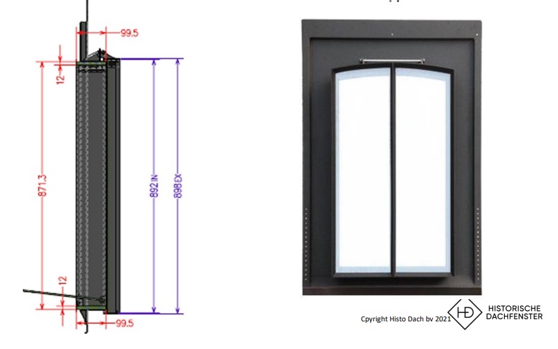510.0004.70 Dachfenster DRF 50 x 90 cm (Fensterteil) Oben Rundbogen Vertikale Einteilung Eisen pulverbeschichtet