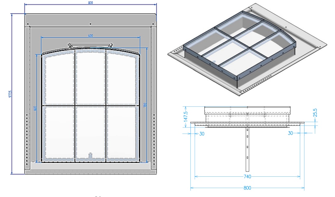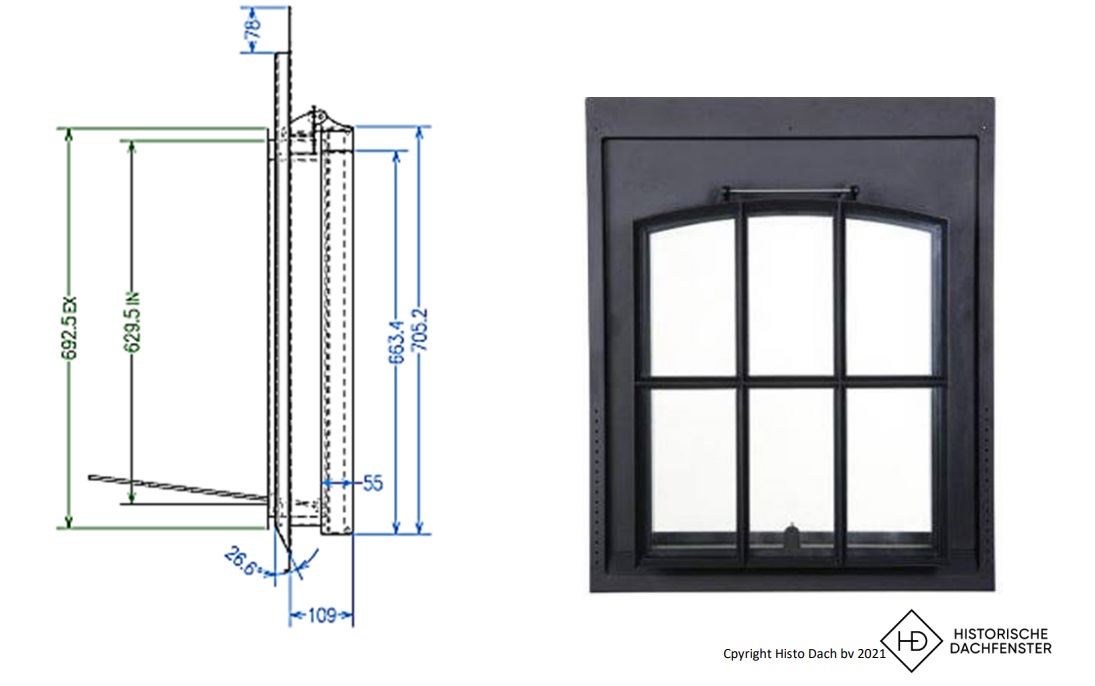 510.0007.70 Dachfenster DRPK 60 x 70 cm (Fensterteil) Oben Rundbogen Kreuz Einteilung Eisen pulverbeschichtet