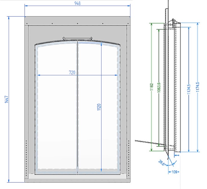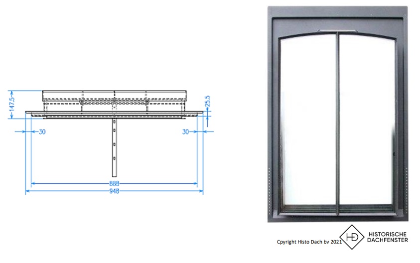 510.0009.70 Dachfenster DRX 77 x 118 cm (Fensterteil) Oben Rundbogen Vertikale Einteilung Eisen pulverbeschichtet