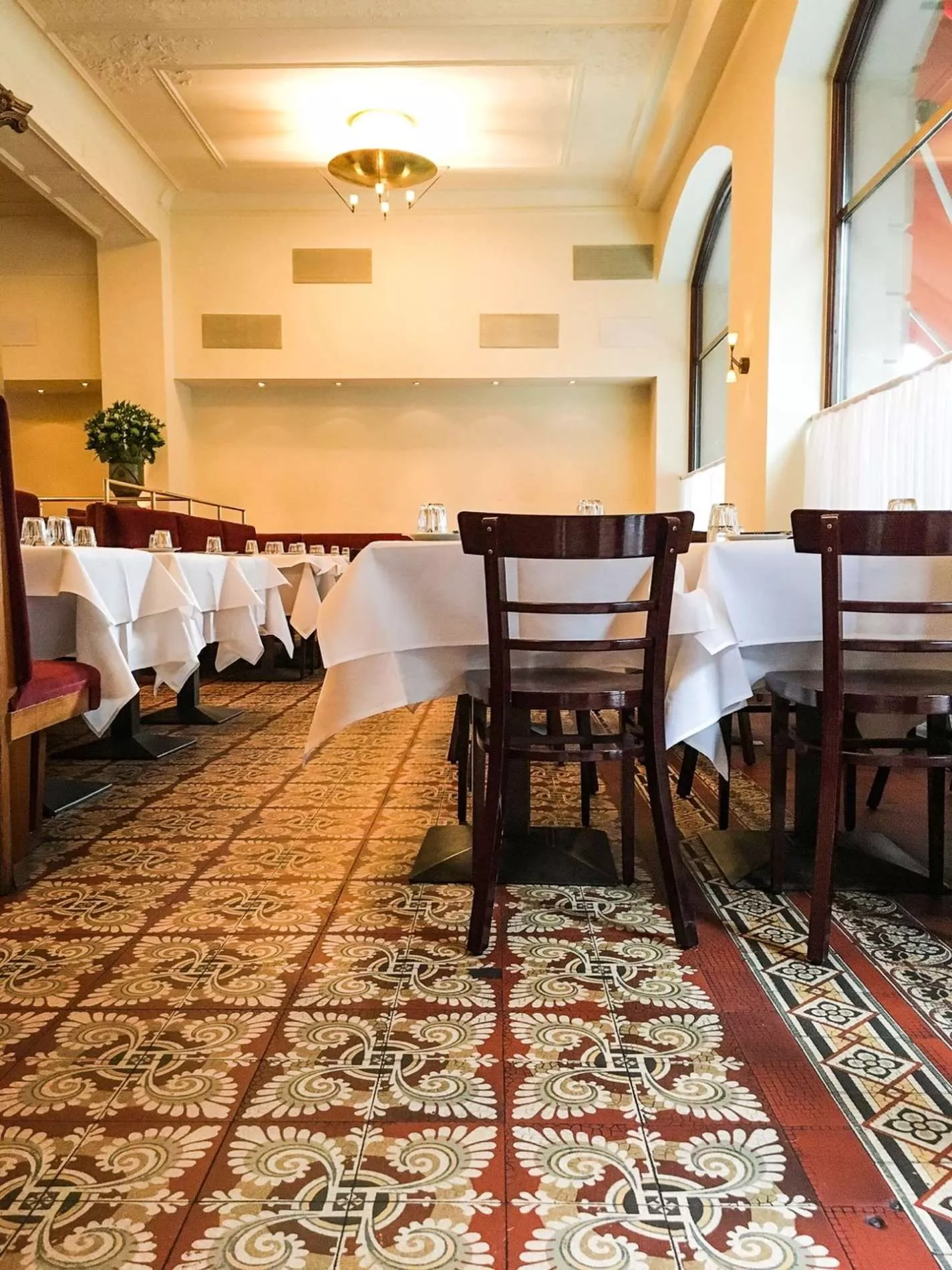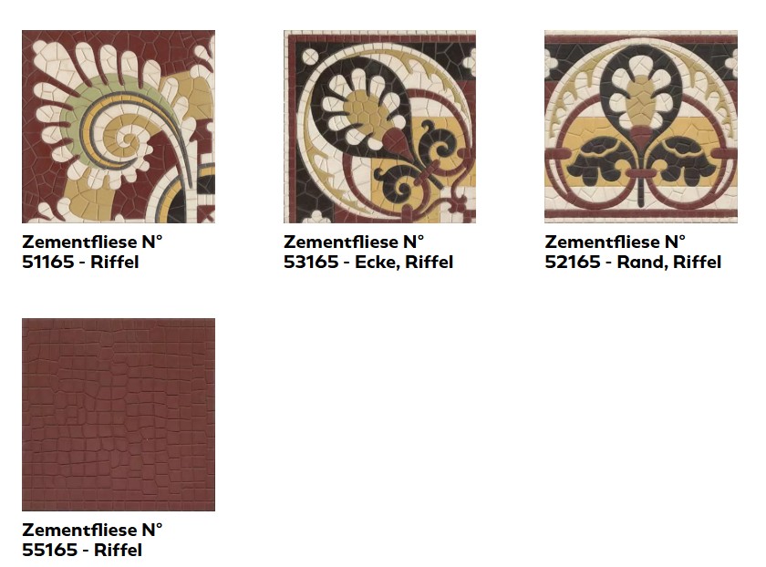 Aufwendig geriffelte VIA Zementmosaikfliese mit Muster aus dem Borchardt in Berlin.