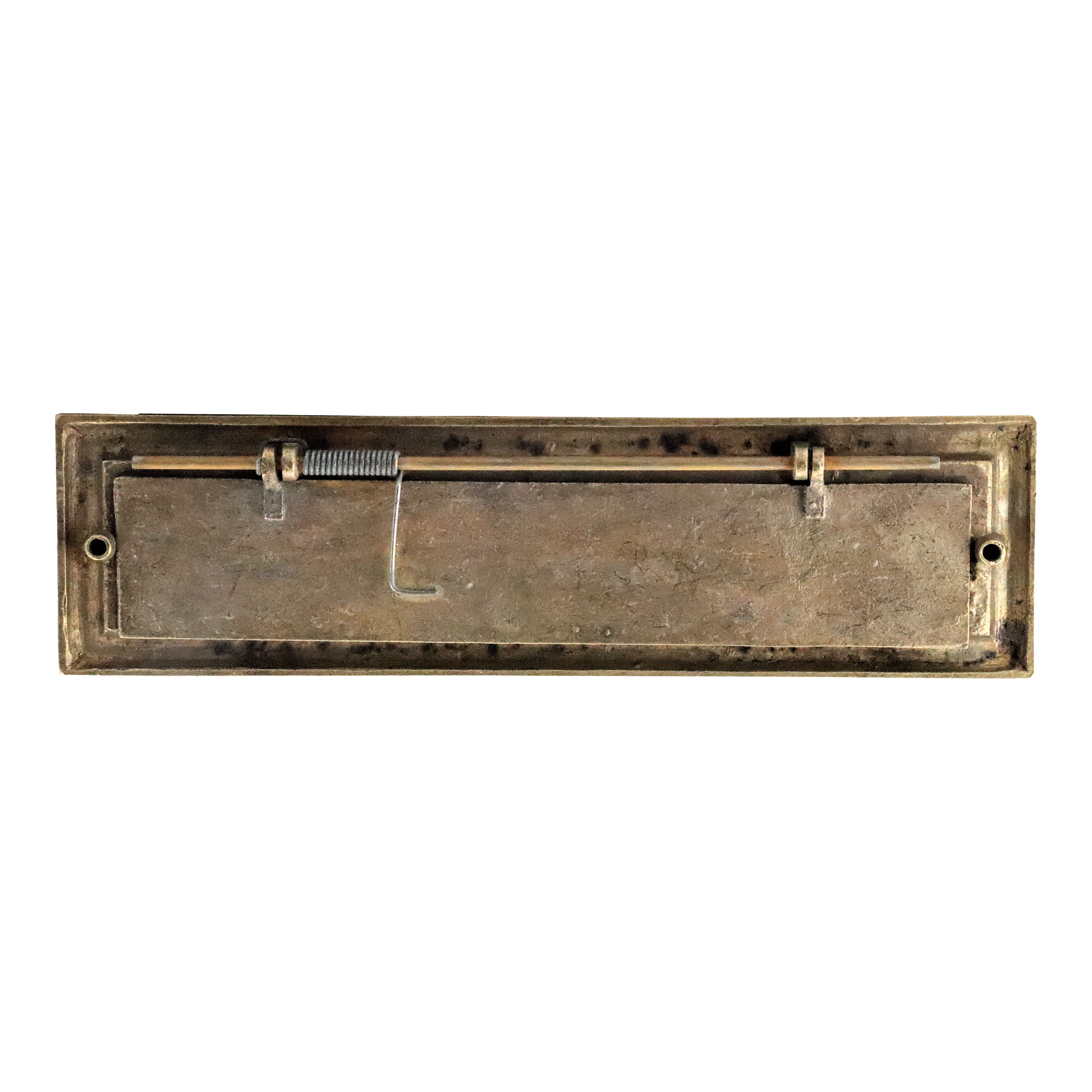 Briefkastenfront Messing, Briefkastenschlitz patiniert.