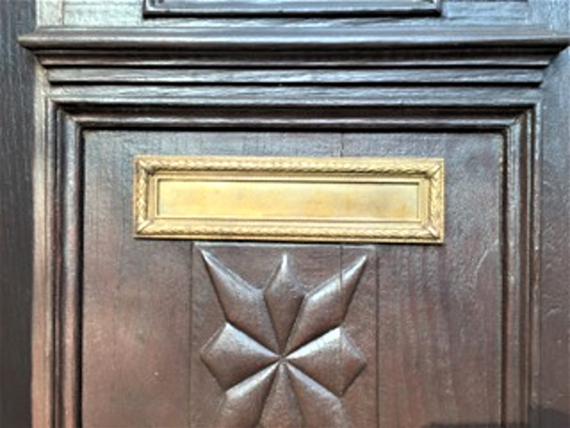 Glänzende JCB Postklappe aus Messing, dezent im Jugendstil gehalten für stilsicheren Postempfang.