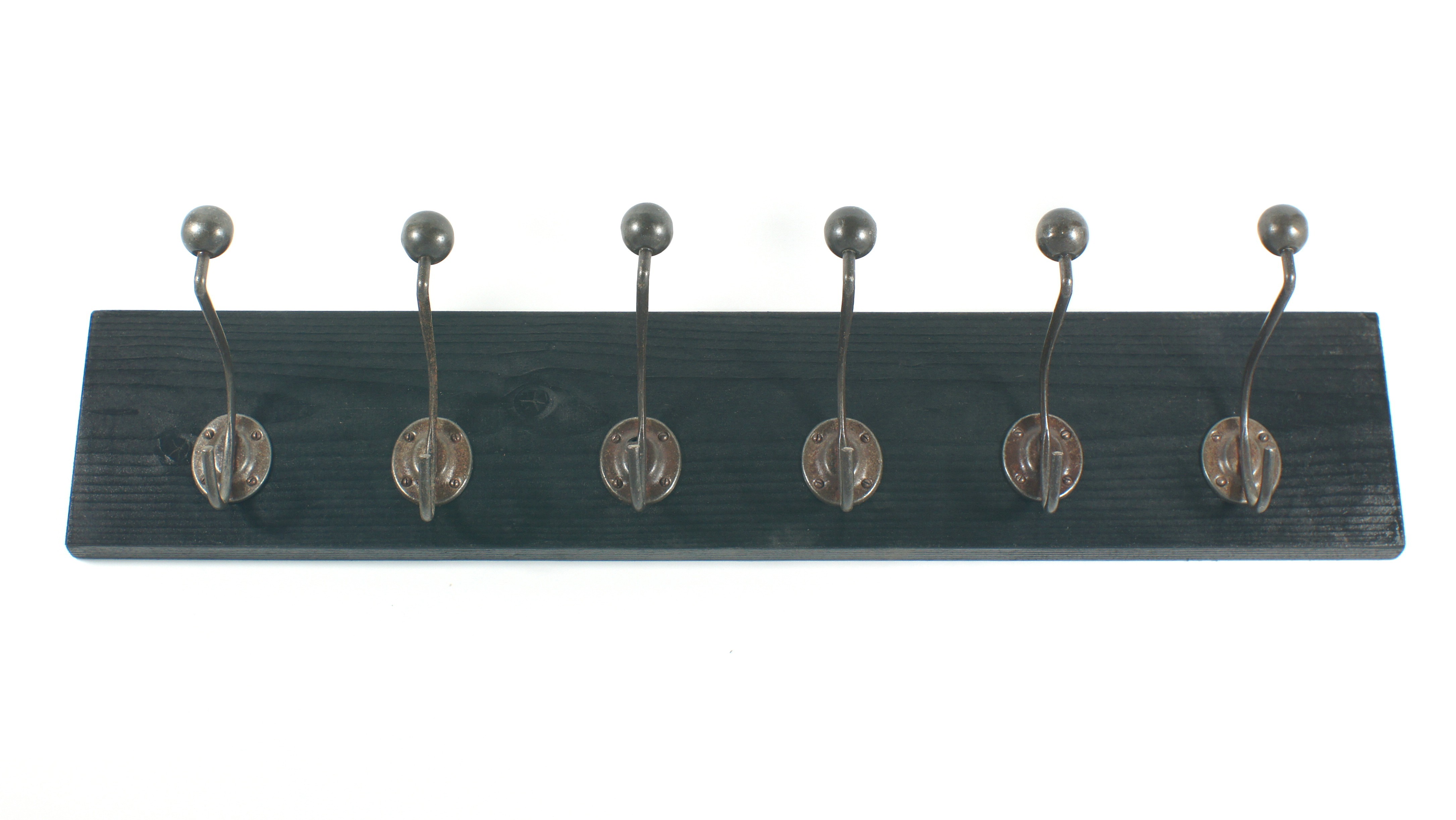 Kugel-Kleiderhaken in Eisen antik für Hinter- und Übereinander-Reihung von einem Kleidungsstück.