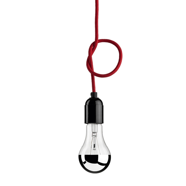 Baustellenfassung Bakelit mit Baldachin Porzellan und Textilkabel rot