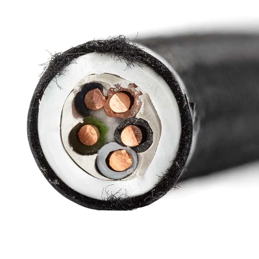 Textilummanteltes, halogenfreies NHXMH-Kabel (5 x 2,5 mm²).