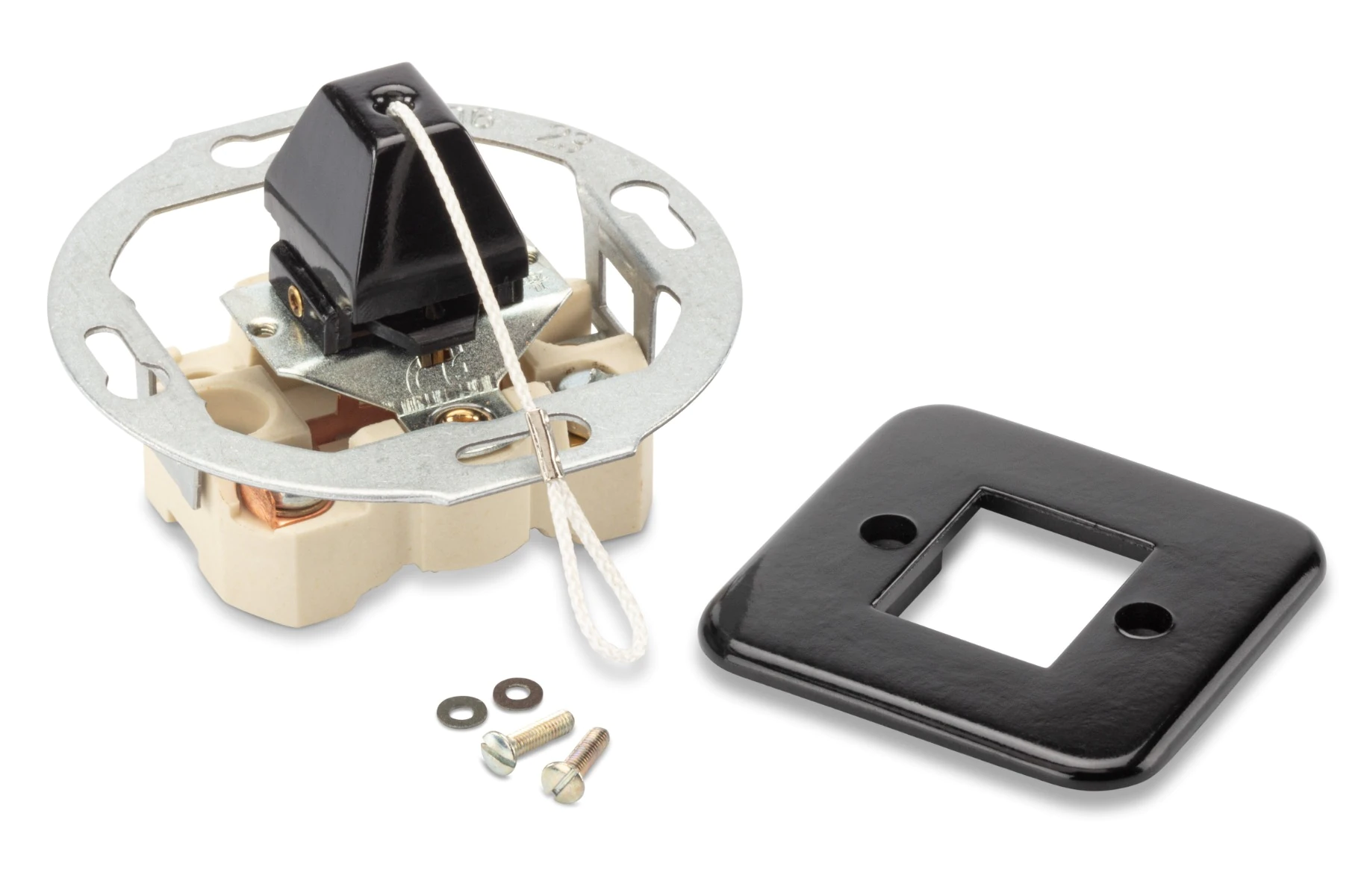 Produktinformationen "900.0047.BS Drehschalter Wechsel, Unterputz-Schaltersystem Bakelit schwarz mit eckiger Abdeckung"